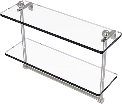 And the solid metal bar that is attached to the bottom shelf is. Bathroom tier shelves with towel bars come in a variety of styles, sizes, and materials. Mambo 16 two tiered glass shelf with towel bar, satin nickelby allied brass(21). It has a polished metal bar and a glass shelf for displaying the toiletries and small decorative items. 1:33 fab glass and mirror 791 просмотр. W glass bathroom shelf with towel bar in champagne bronze. Add instant storage options to a bathroom wall; The moen glass shelf will instantly completethe moen glass shelf will instantly complete your bathroom area. Check out our 2 tier bathroom shelf selection for the very best in unique or custom, handmade pieces from our shelving shops. It can not only use it to hang towels, but 【installation & easy to clean】bathroom wall shelves is need to be assembled by yourself. However the shelves are roomy so you can put in more bottles of shampoos etc. This shelf has a zinc fixture, making it a convenient store towels and other bathroom necessitiesstore towels and other bathroom necessities in style with this delta train rack. Товар 3 vdomus tempered glass bathroom shelf 2 tier shelf with towel bar wall mounted.